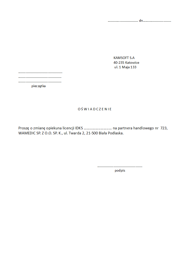 Zawiadomienie PODATNIKA o miejscu instalacji kasy rejestrującej. Zgłoszenie kasy przez podatnika. Ten dokument zgłasza podatnik w ciągu 7 dni od daty fiskalizacji do US celem potwierdzenia instalacji kasy.
